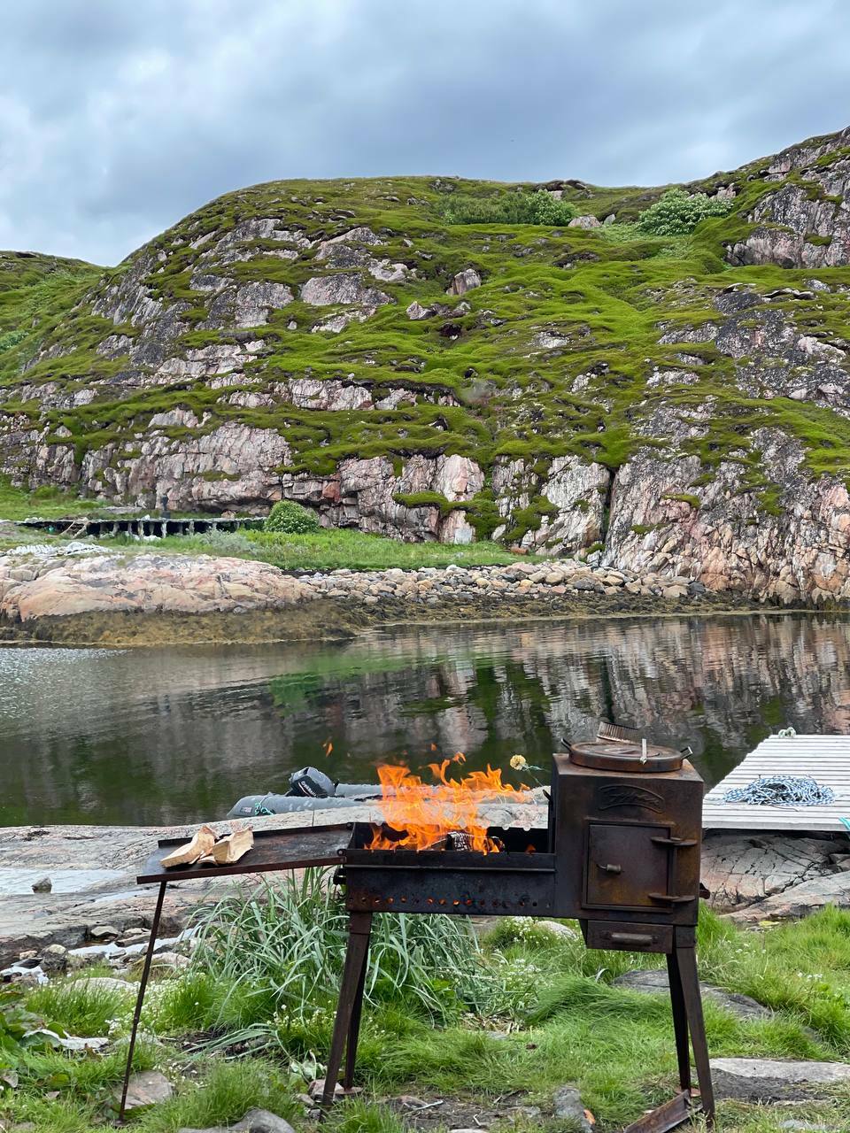 · Активный отдых: Для желающих — катание на сапах (стоячие весла) в тихой бухте. Неповторимое ощущение скольжения по зеркальной арктической воде среди скал.
