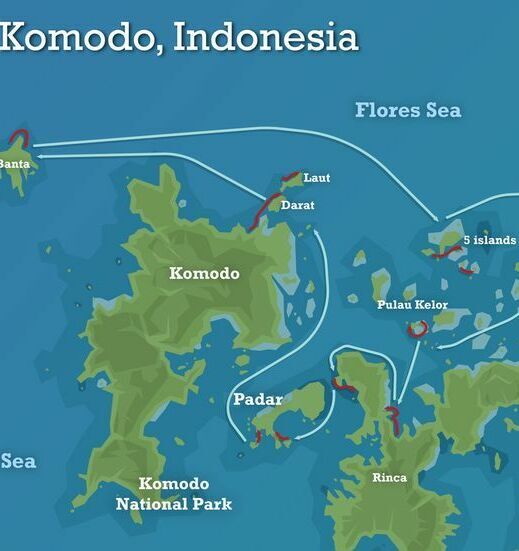 На суше царят легендарные обитатели — комодские вараны, самые крупные ящерицы на планете. Остров Флорес, пока остающийся в тени популярных курортов, хранит множество сокровищ: древние деревни с коническими крышами, мистические пещеры, ароматные кофейные плантации и редкие розовые пляжи. А на соседних островах возвышаются действующие вулканы, среди которых особенно знаменит Келимуту с его тремя разноцветными озерами.