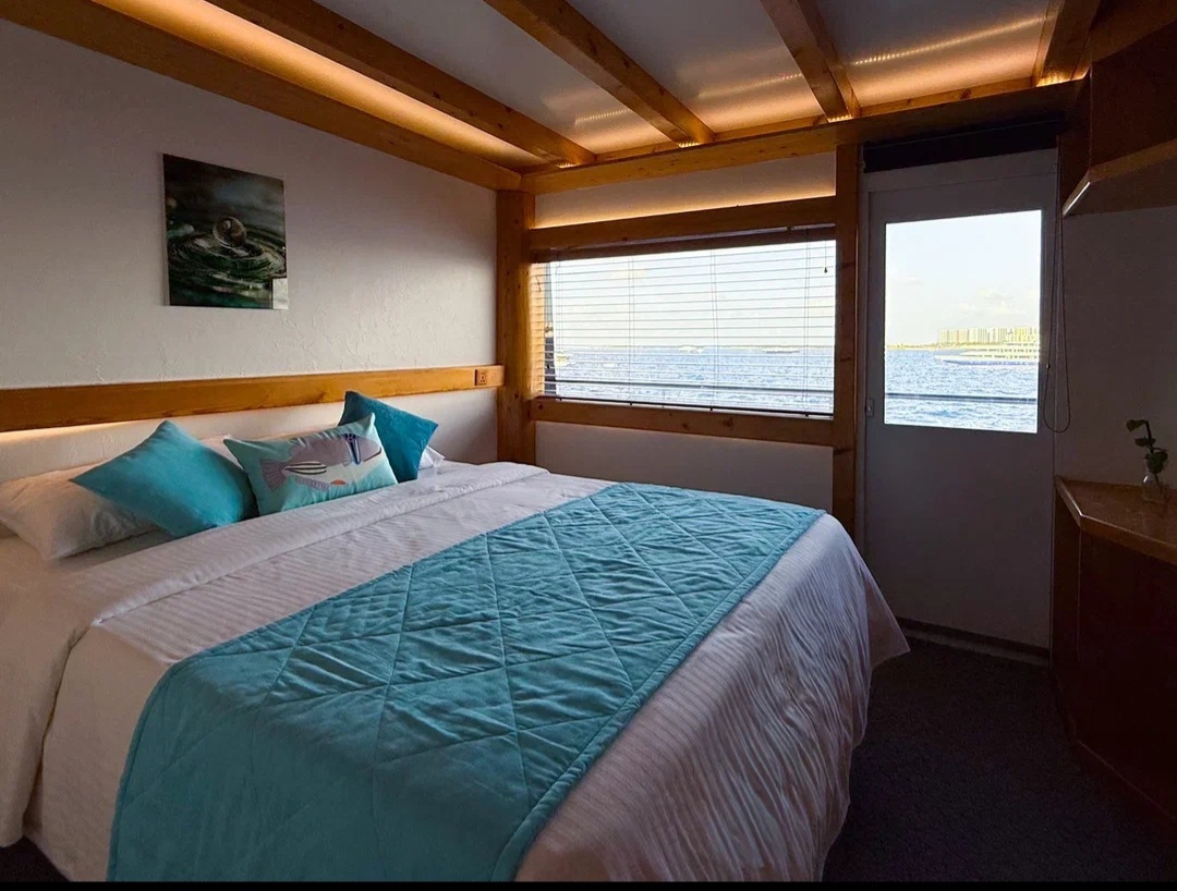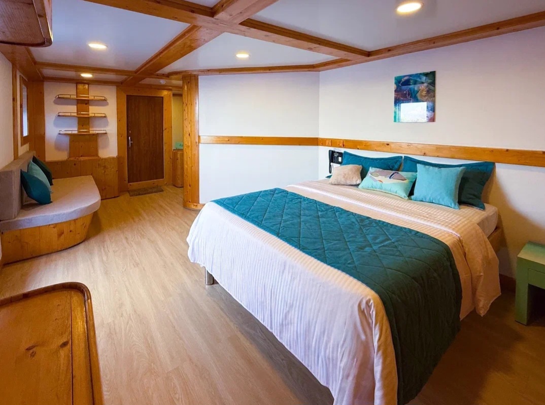 - Deluxe Double Queen 2 каюты (No 9 и 10) с двуспальными кроватями размера queen-size и небольшим диваном, площадью 10 м2.